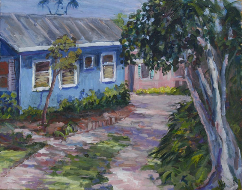 Blue Cottage at Delray / acrylic on canvas / 16x20"